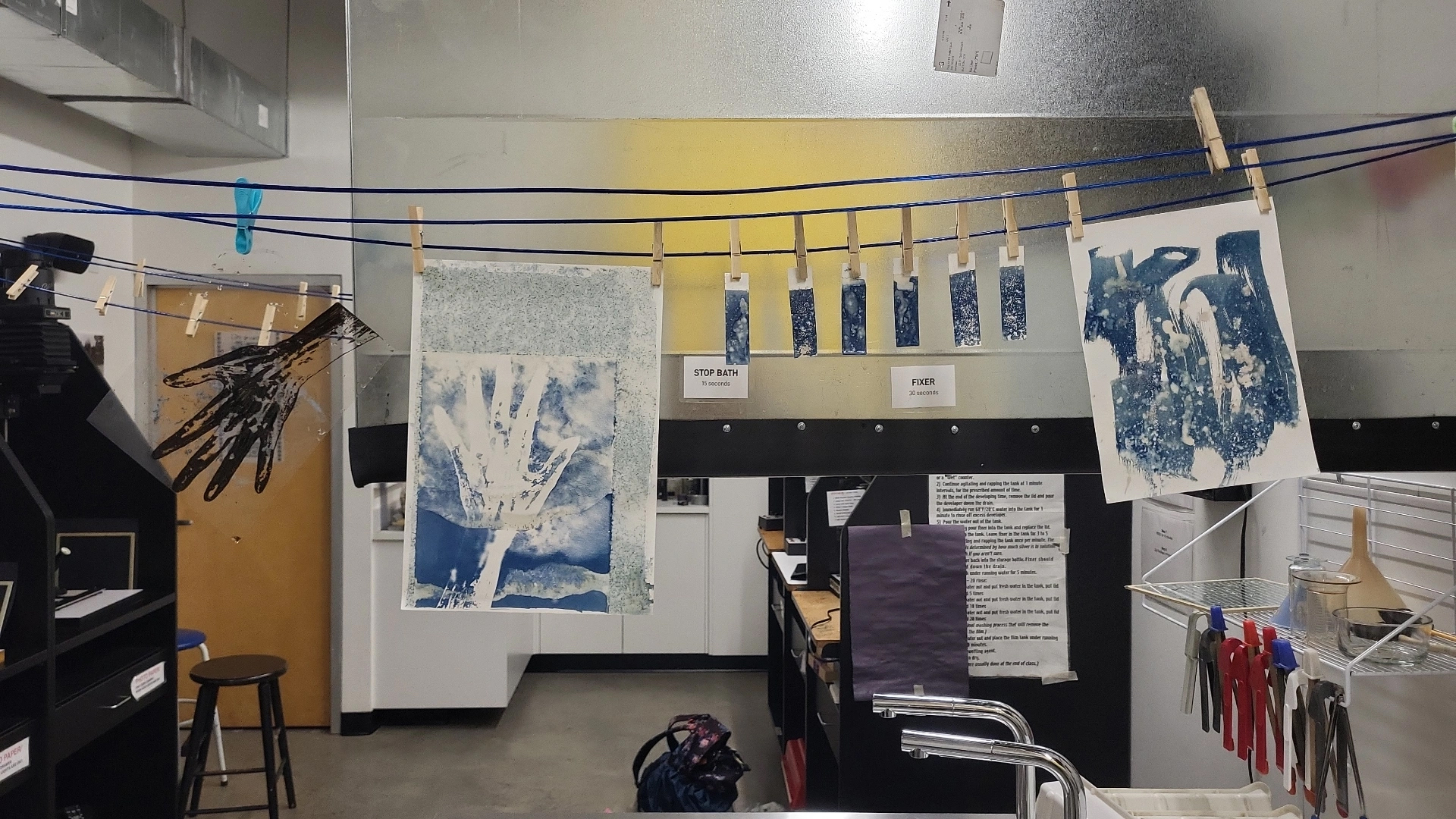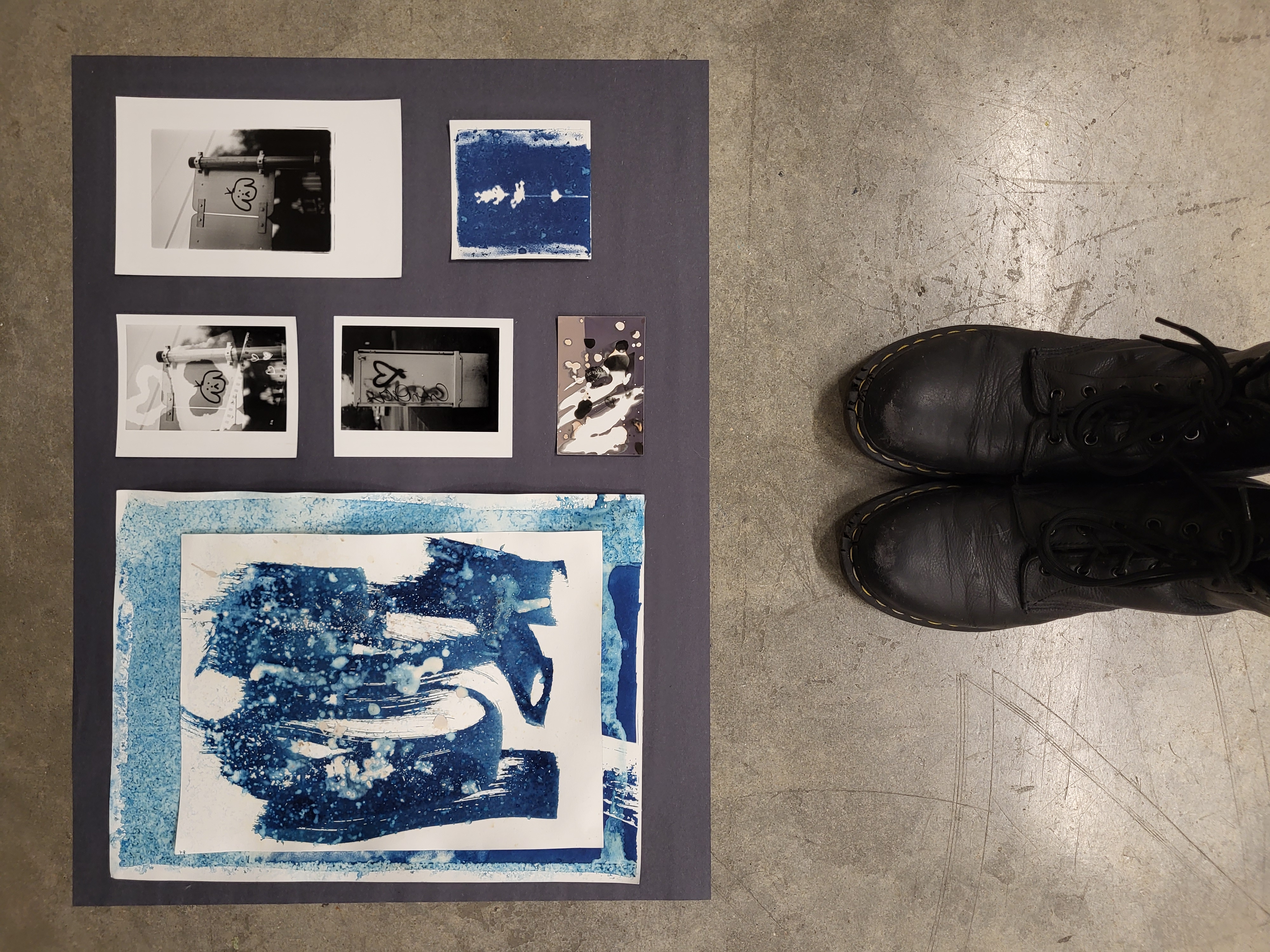 I led my students through a mixture of traditional 35mm darkoom enlargement processes, as well as introducing some more experimental approaches and alternative photography techniques - exploring cyanotype, lumen prints and chemigrams